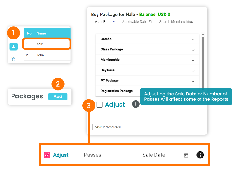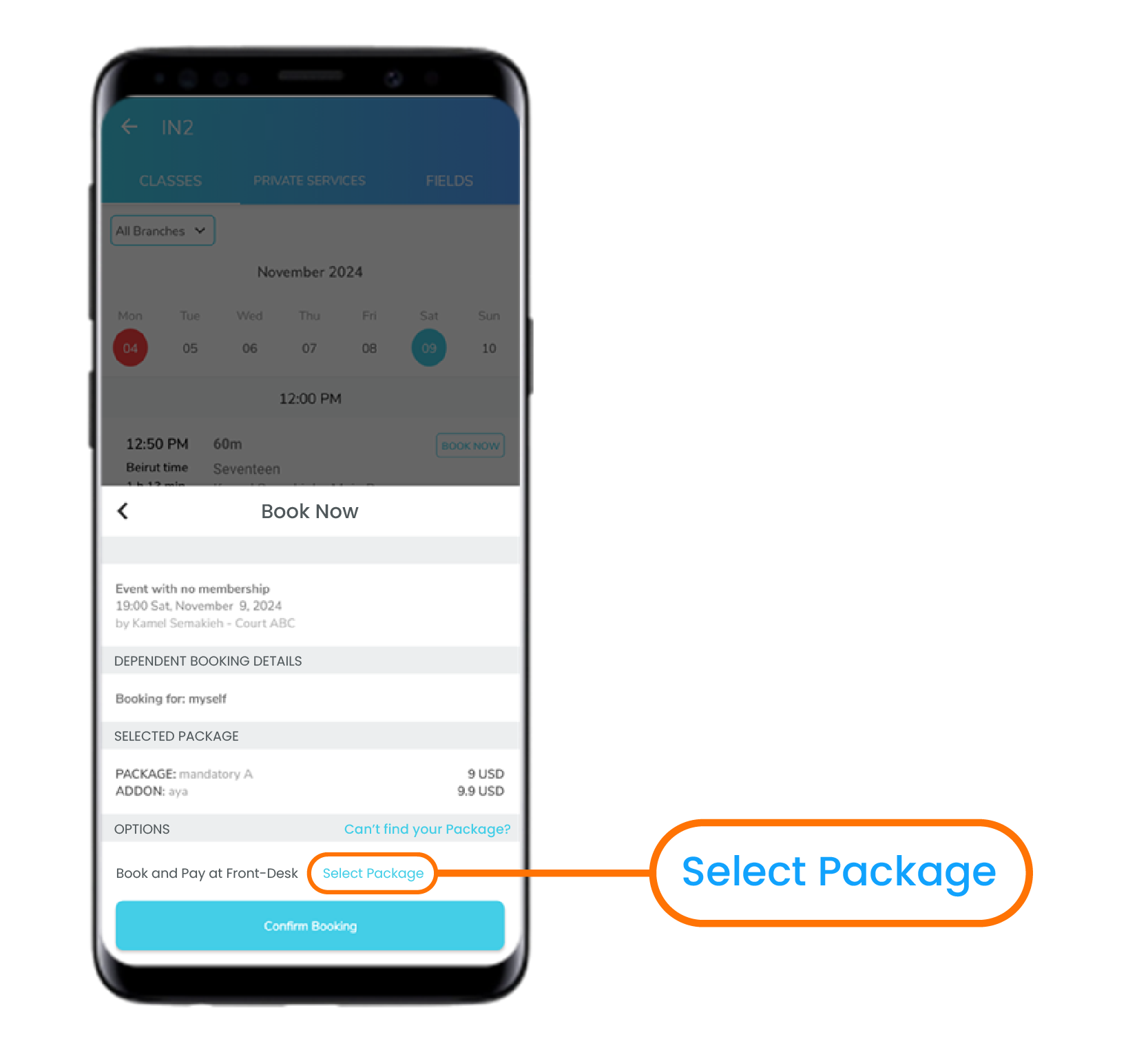 Buying a Package While Booking a Class and Paying at Front-Desk Option in App