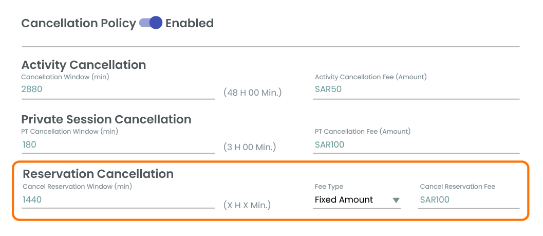 Basic Business Settings: Set up your default cancellation policy for the entire tenant.