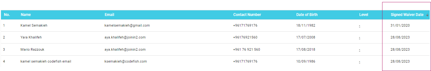'Signed Waiver Date' Column Added in 'Clients Module'