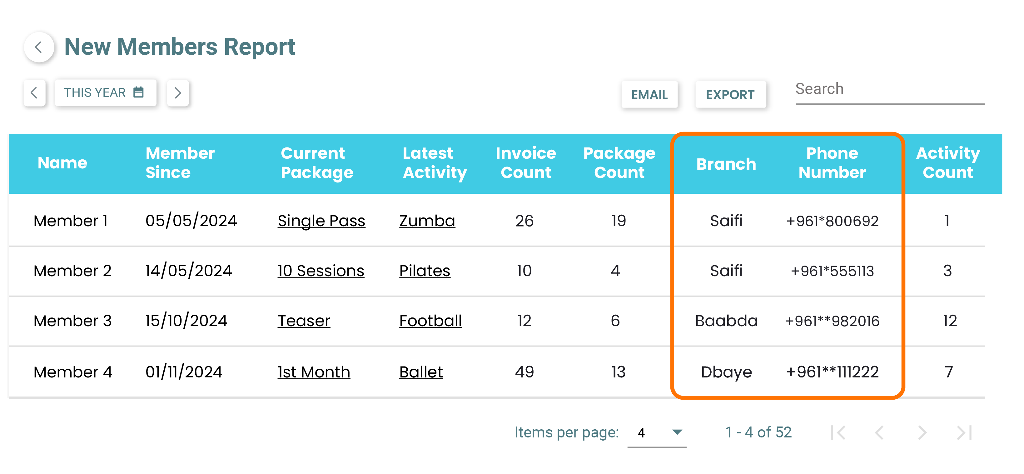 Added 'Phone Number' & 'Branch' Columns in the 'New Members' Report