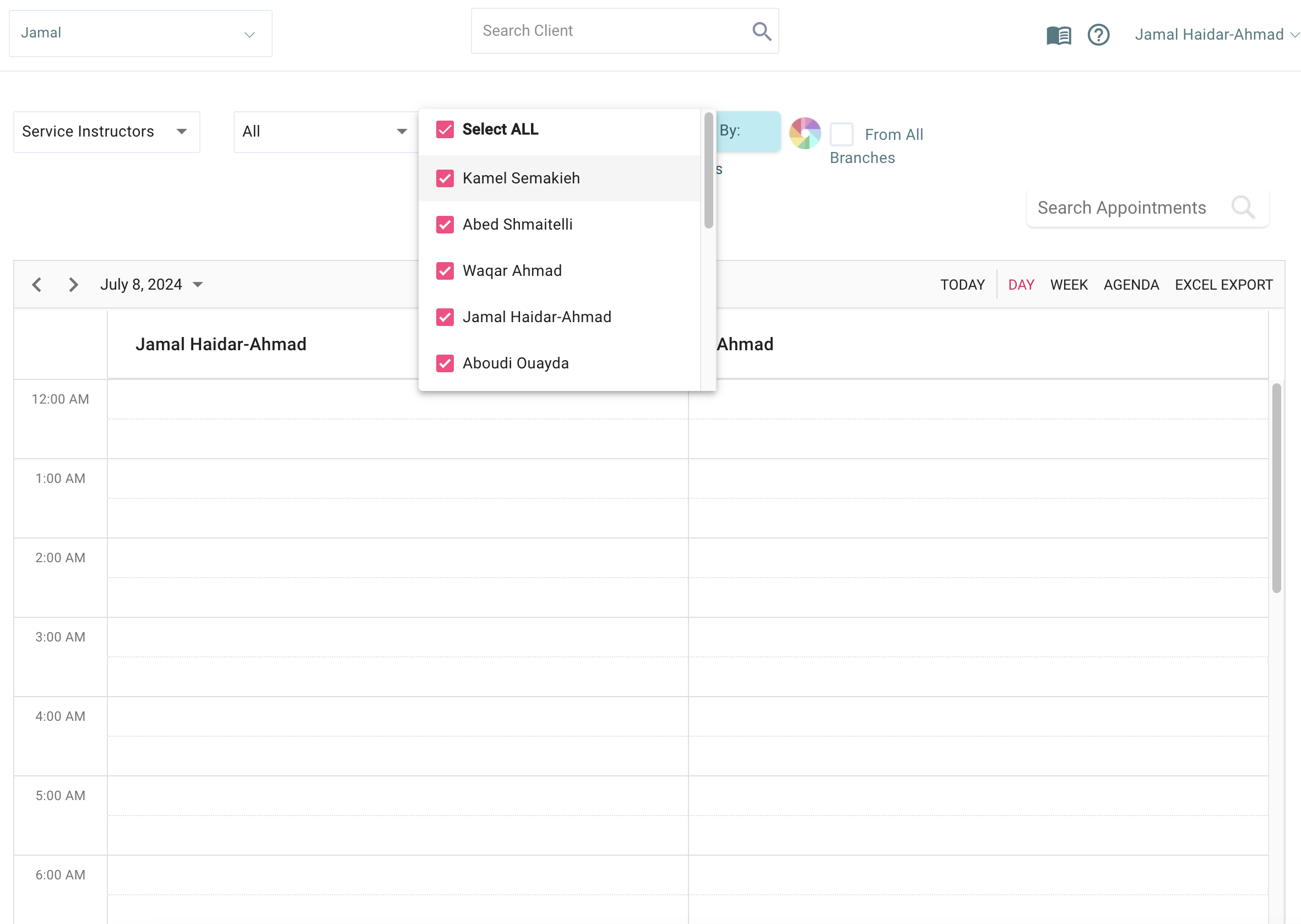Only the Instructors assigned to the Branch Appear