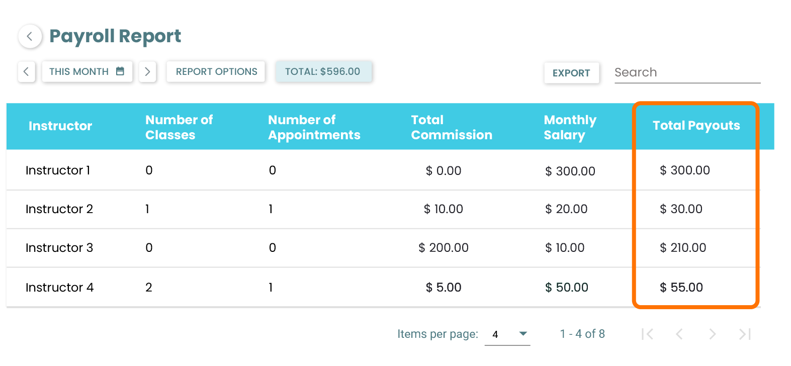 For a streamlined user experience, the Payroll Report now includes 'Total Payouts,' a new field that calculates and displays the combined total of Commission and Monthly Salary.