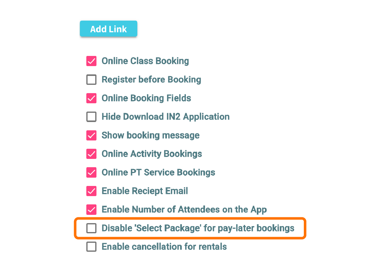 You can now easily turn on or off the Select Package button for the Book and Pay at Frontdesk payment option.