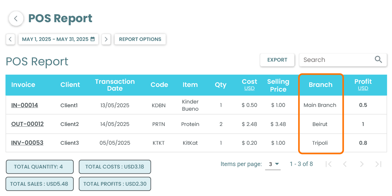 Great news! We've added a Branch column to your POS Report to enhance visibility.