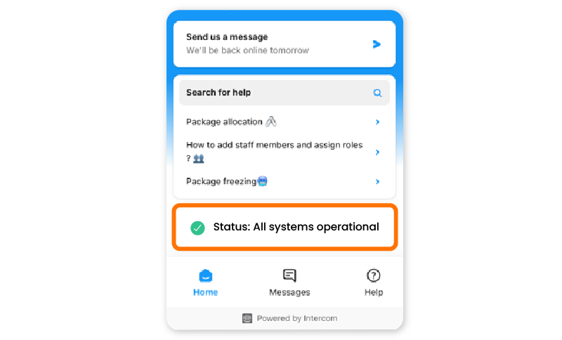 Intercom: Status Page provides real-time information about the availability and performance of a service or system.